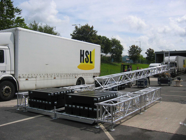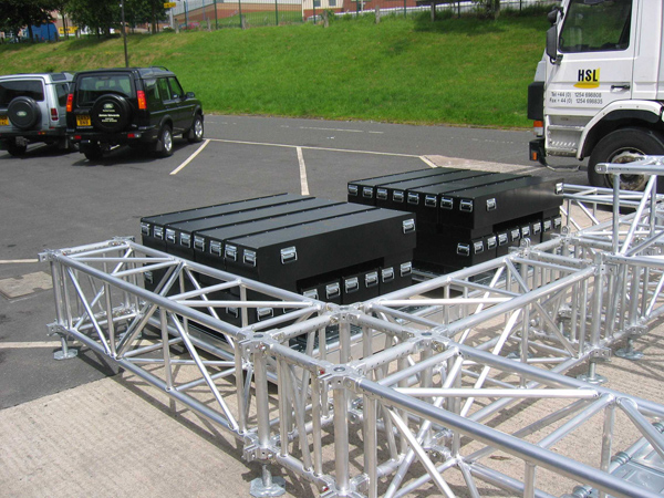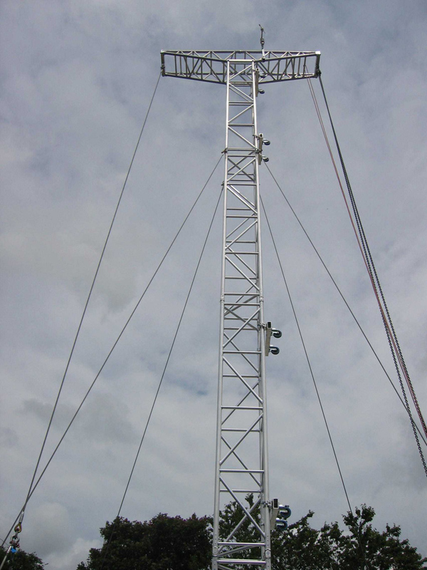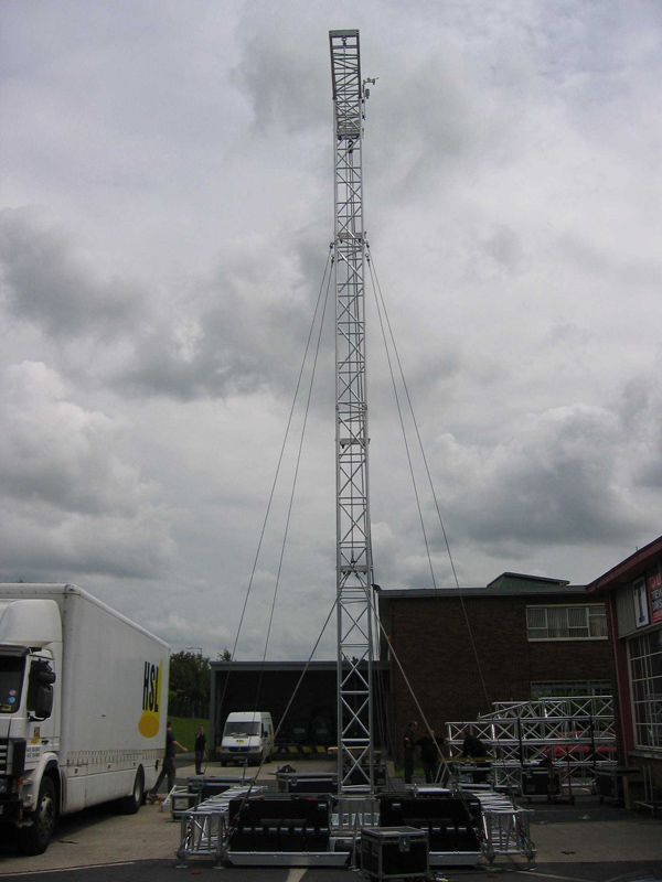 Vertical audio system support tower. It consists of QL52A structures and is suitable for lifting loads of up to 2000 kg to a height of 13 metres.