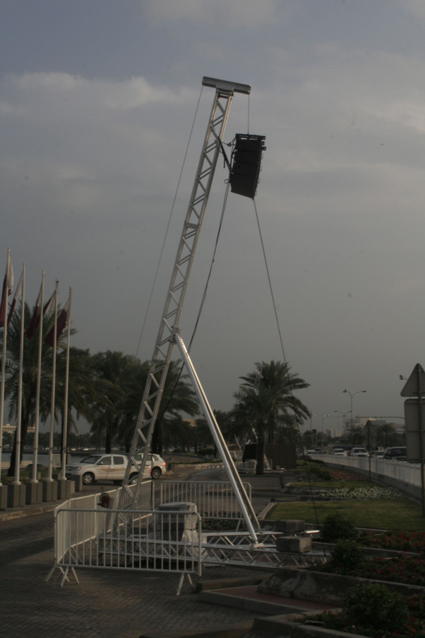 Support Tower for audio systems consisting of a QX30SA structure, suitable for lifting loads of up to 500 kg to a height of 7.5 metres.