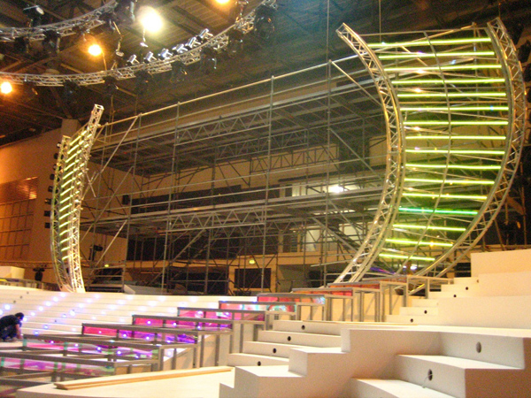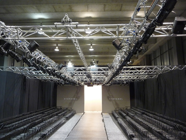 Triangular section aluminium truss with 25 cm long sides.