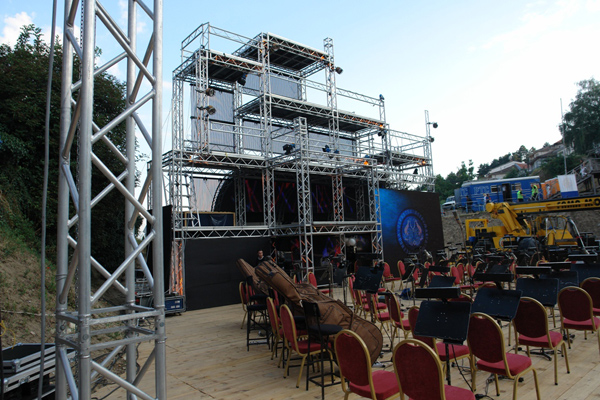 It substitutes the previous model Varitower 2. The system is furnished with telescopic stabilizers, multistandard sleeve block with 16 gliding wheels in high density rubber, and top designed for chain feed. The complete system, except the central truss, is composed of assembled parts, without any weldings. Varitower 3 can use only chain hoist systems, be they manual or electric.