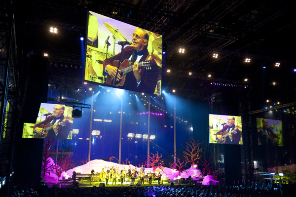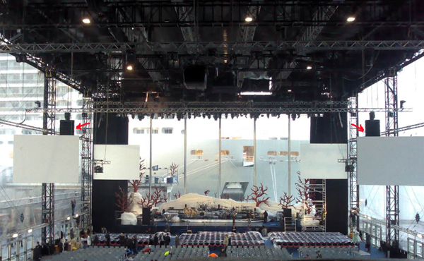 MSC Fantasia is the largest ship ever built for a European ship owner. A travelling universe that offers the maximum in entertainment and well-being. Sophia Loren, a true legend, cut the ceremonial ribbon that released a bottle of champagne to break across the bow of the new ship at its christening. The official christening ceremony was preceded by a suitably glamorous evening of entertainment, staged in an innovative, purpose-built structure. The dimensions were extraordinary 30m (breadth) x21 (height) x70m (length) for a capacity of 2,500 people. The main grid was made with MyT truss.